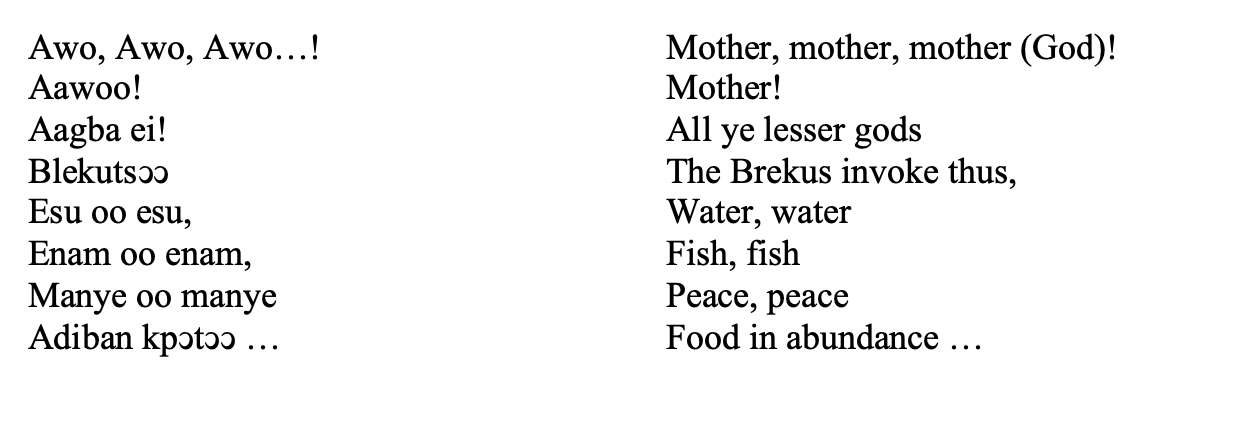 48The Blekus are Acquaye’s native Ga ethnic group’s western neighbours with whom they share many cultural similarities. It is therefore no wonder the Blekus are mentioned in such an important Ga prayer chant.